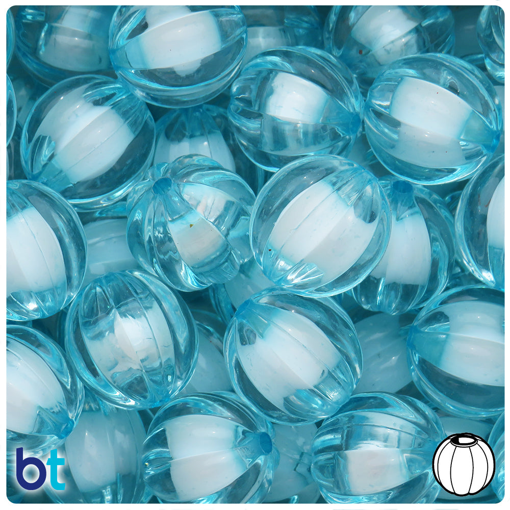 Aqua Blue Transparent 20mm Melon Plastic Beads - White Core Bead (10pcs)