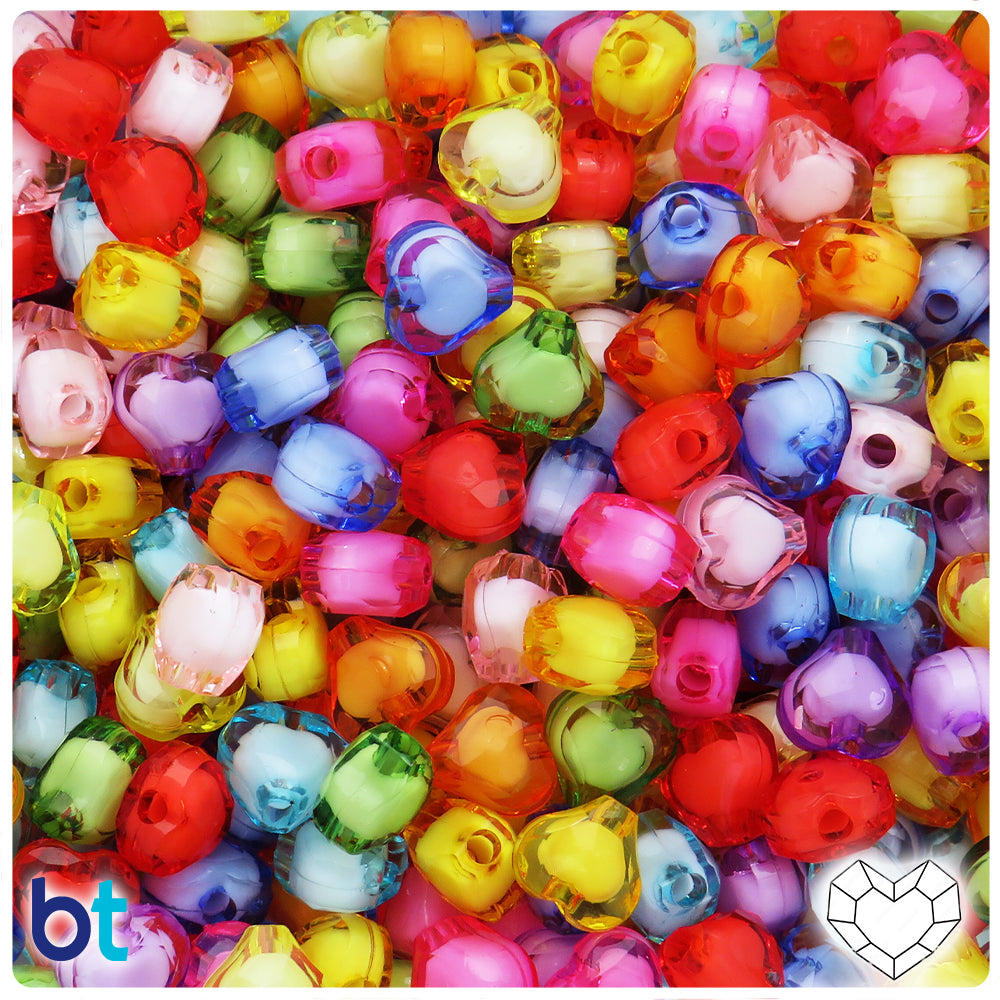 Translucent Mix 14mm Heart Plastic Beads (60pcs)