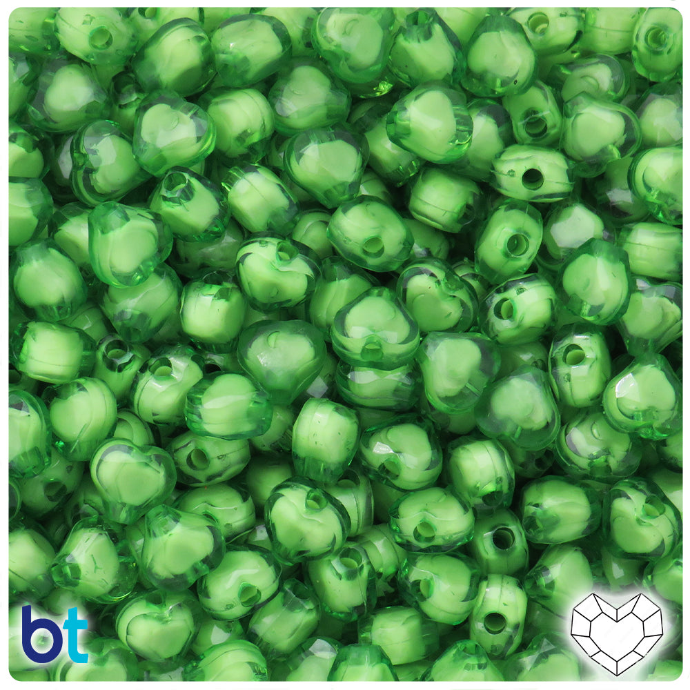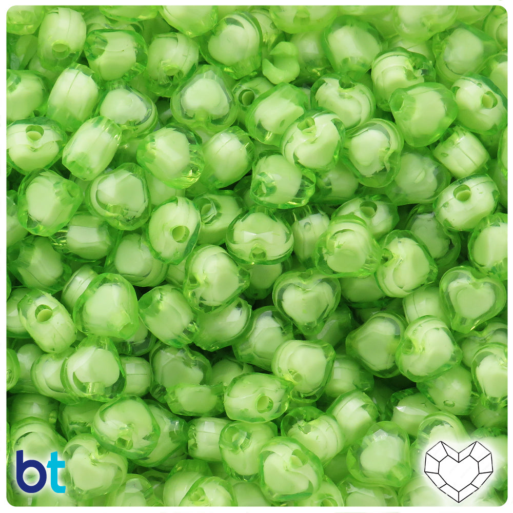 Light Green Translucent 14mm Heart Plastic Beads (60pcs)