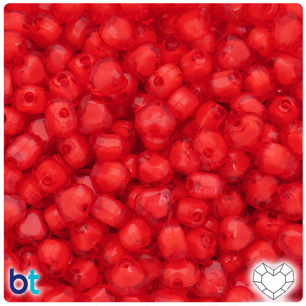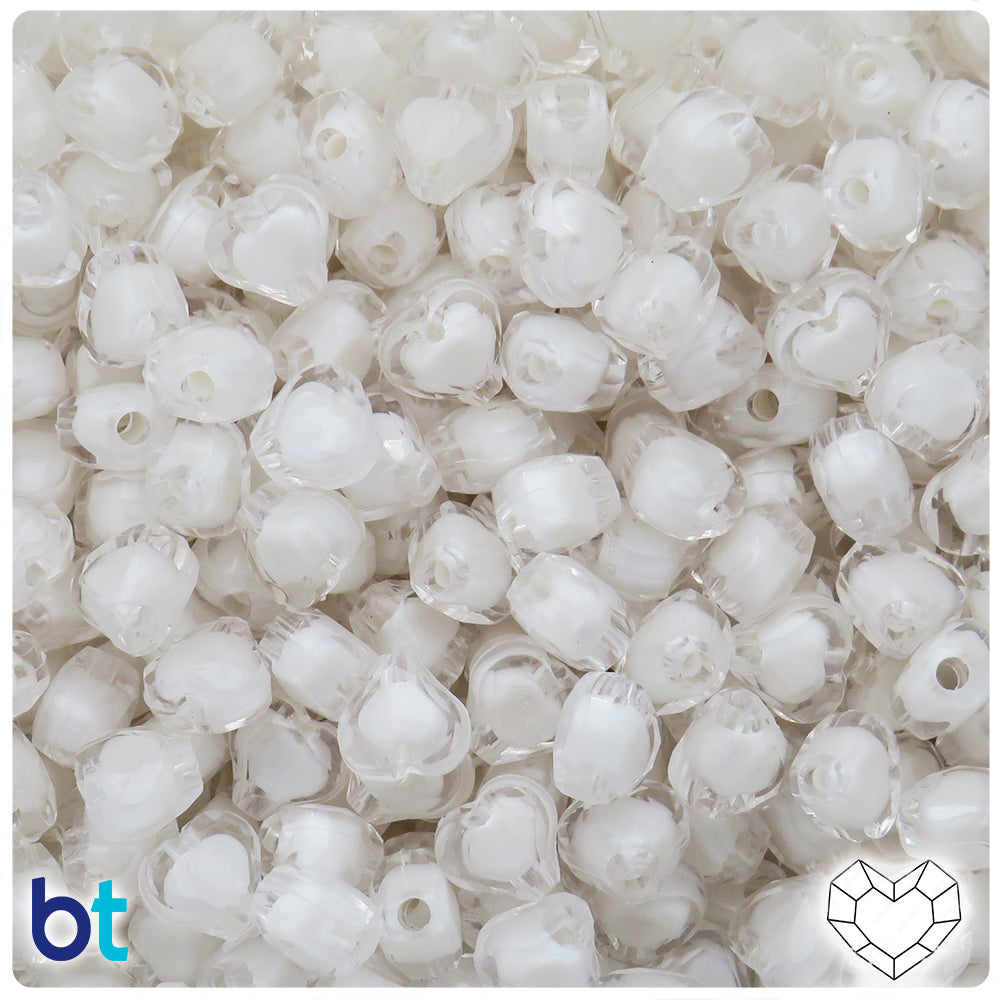 Transparent 8mm Heart Plastic Beads - White Core (Box/7 Colors)