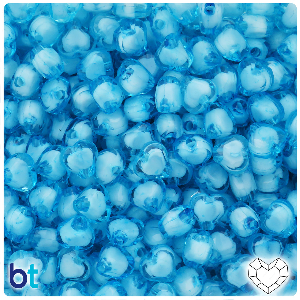 Light Blue Translucent 14mm Heart Plastic Beads (60pcs)