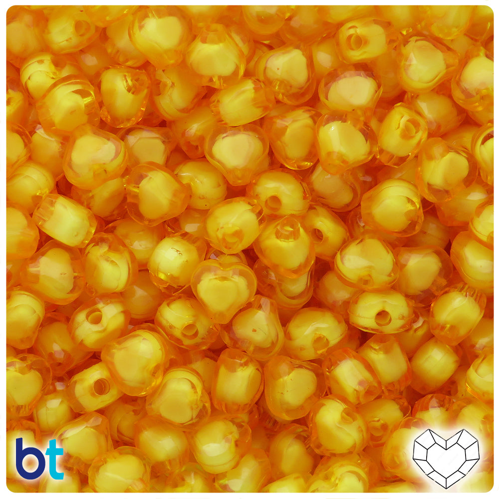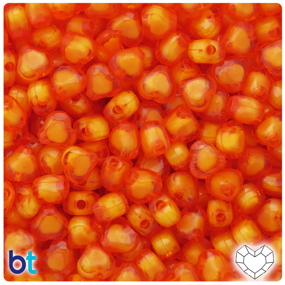 Orange Marbled 23mm Heart Plastic Beads (24pcs)