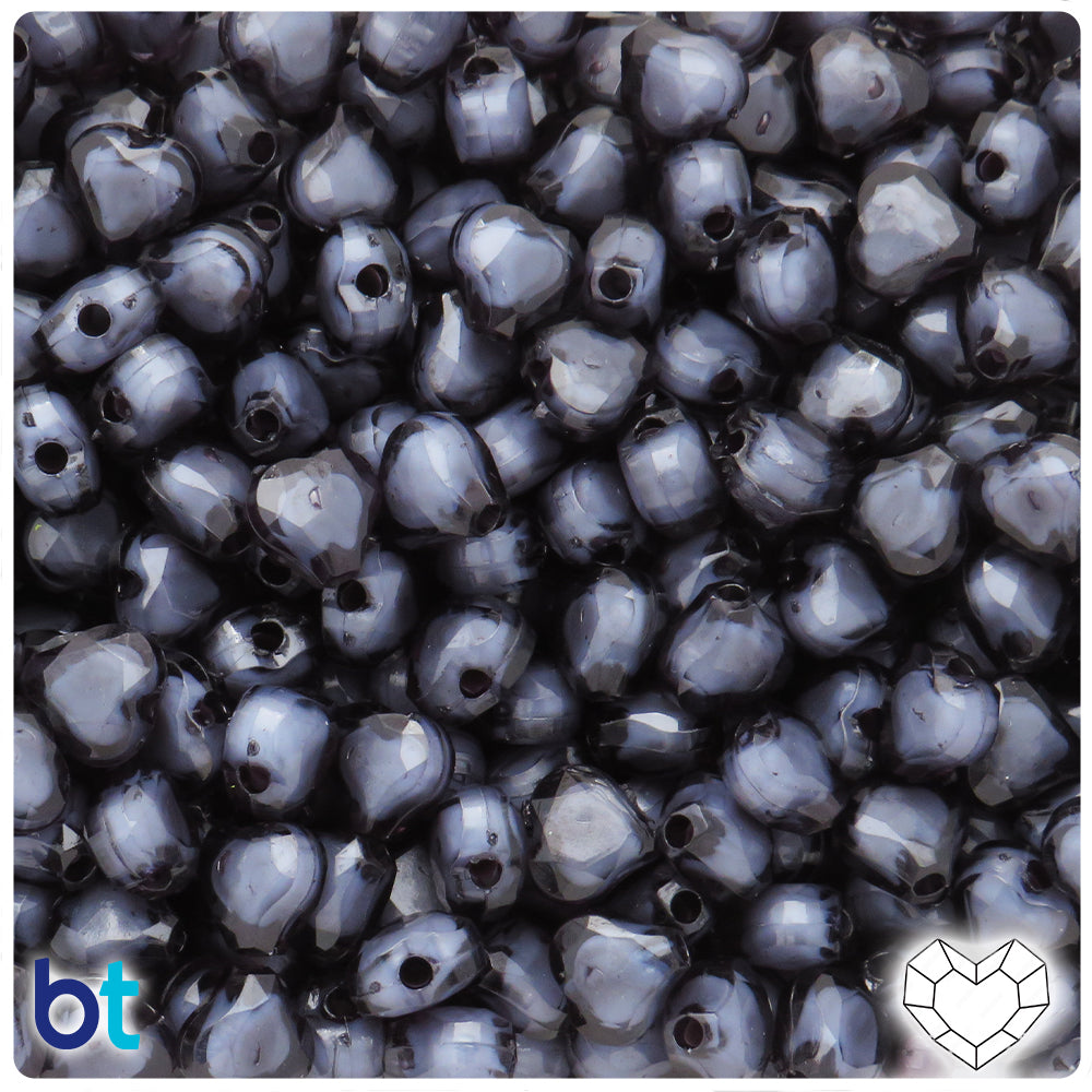 Black Marbled 23mm Heart Plastic Beads (24pcs)