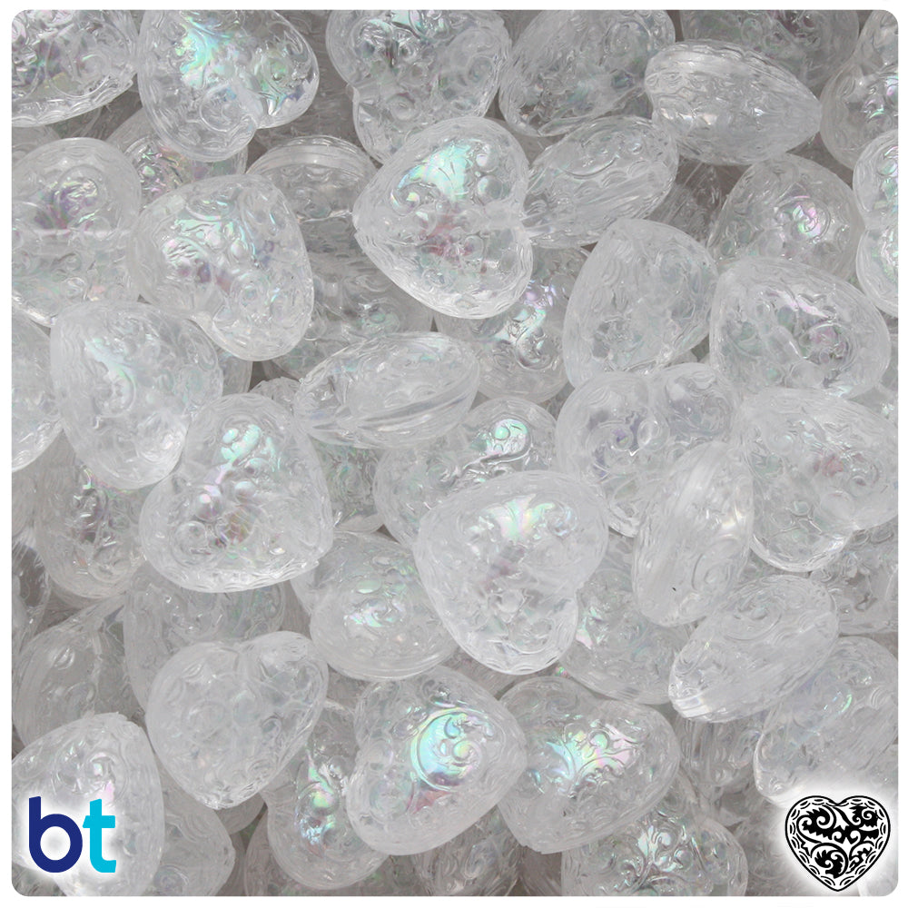 Crystal Transparent AB 15mm Filigree Heart Plastic Pendant Beads (25pcs)
