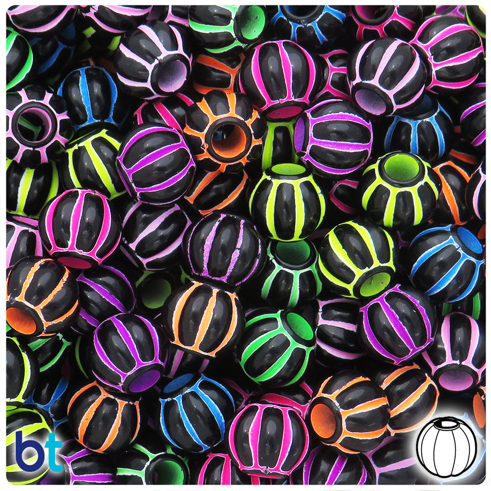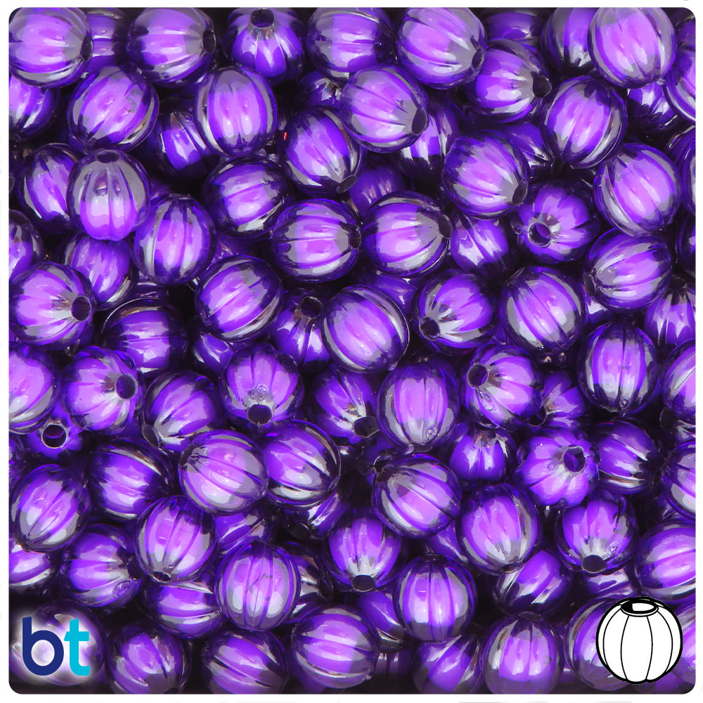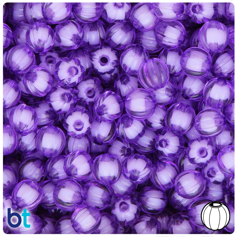 Dark Purple Transparent 10mm Melon Plastic Beads - White Core Bead (100pcs)