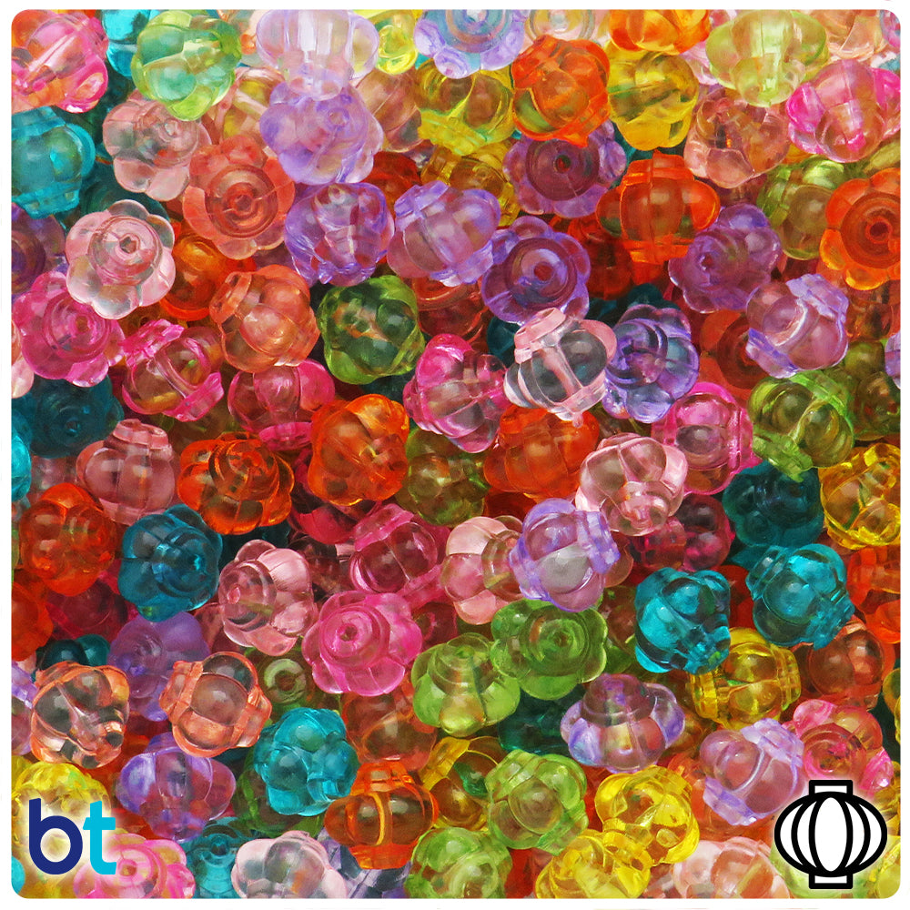 Rose Pink Transparent 10mm Melon Plastic Beads - White Core Bead (100pcs)