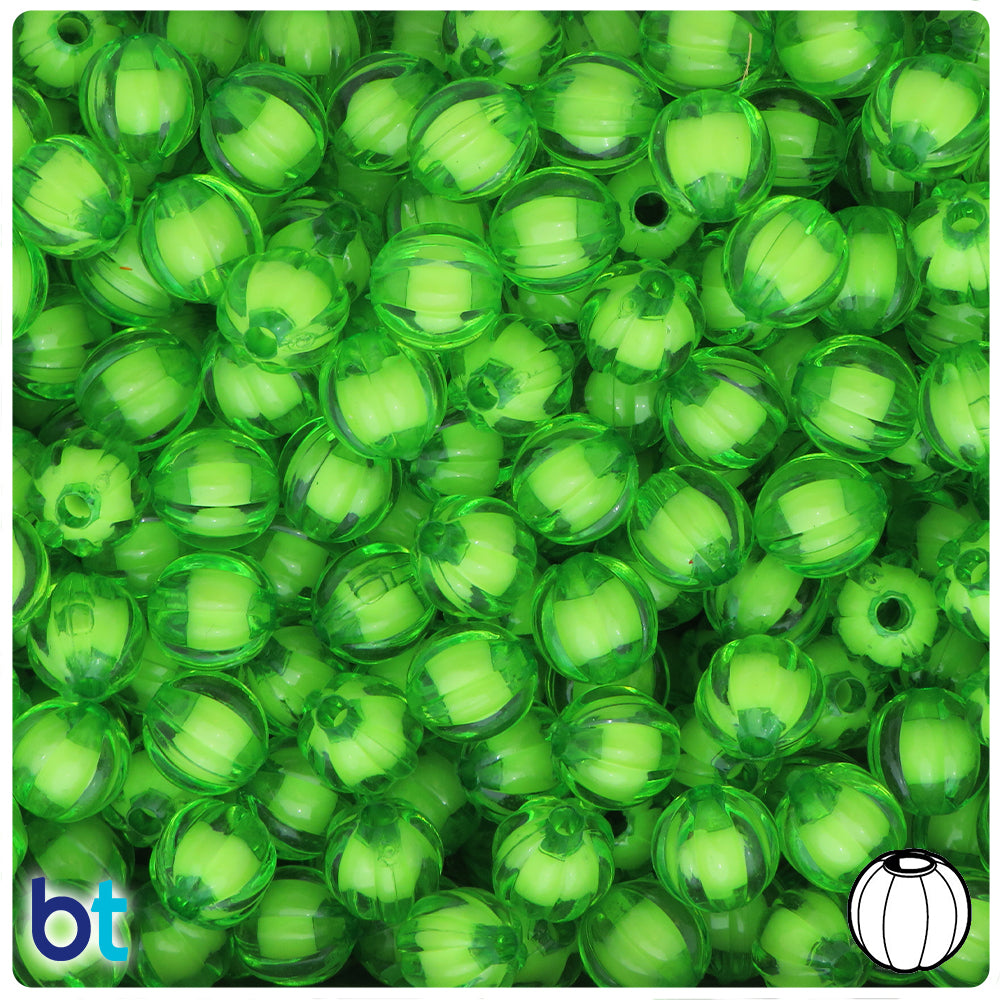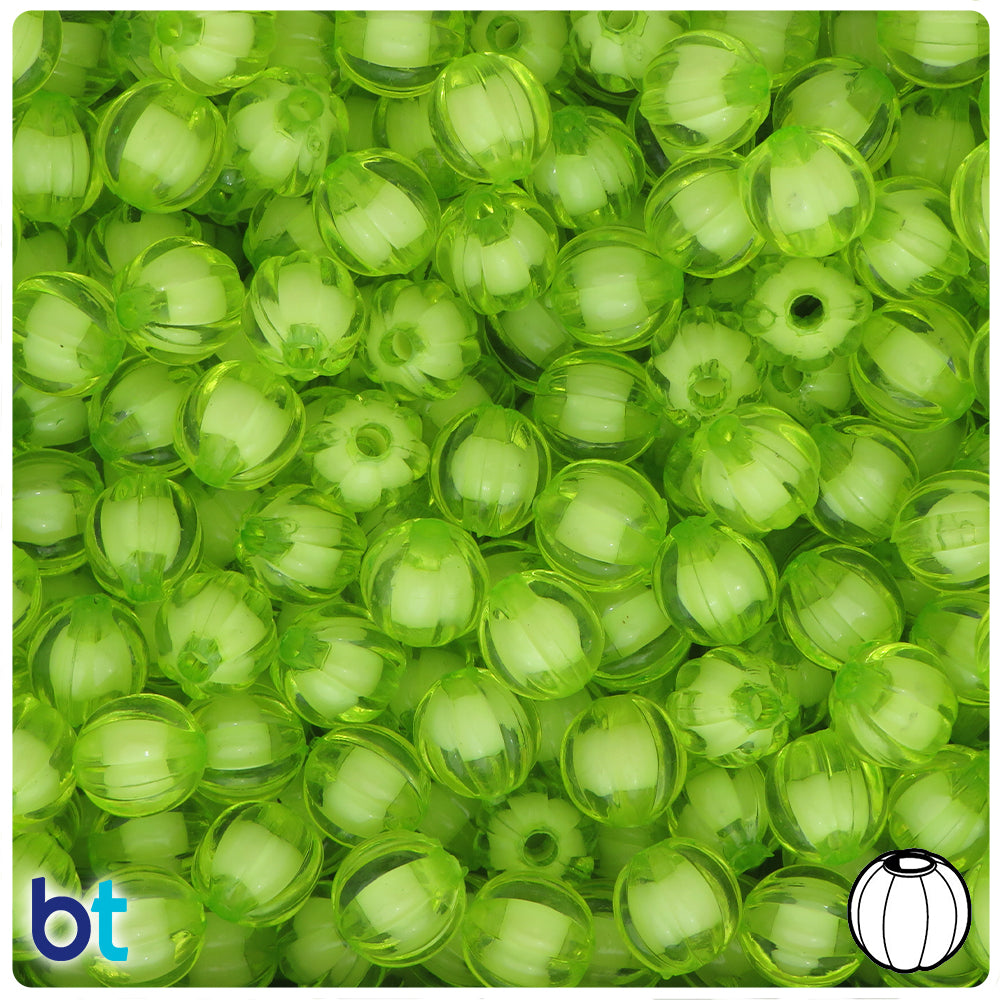Light Green Transparent 10mm Melon Plastic Beads - White Core Bead (100pcs)