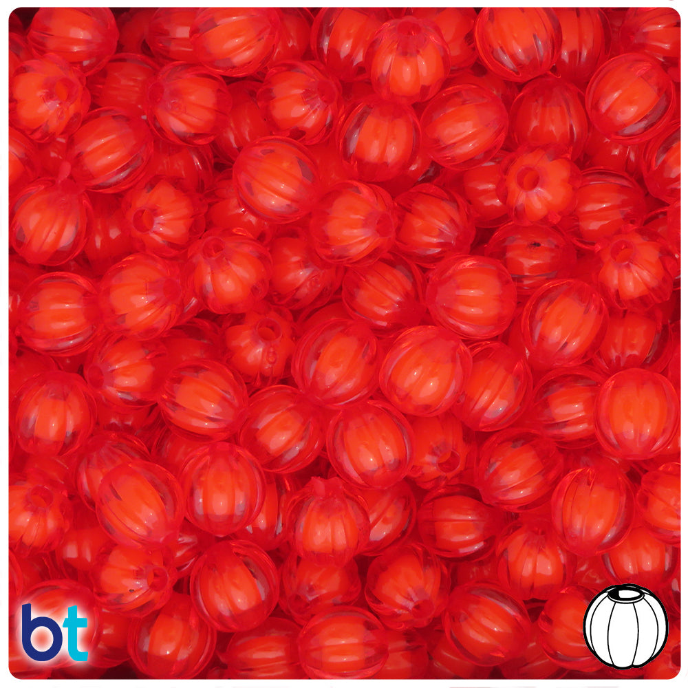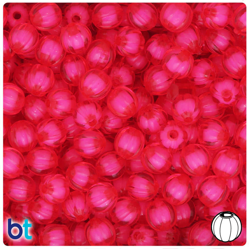 Dark Pink Transparent 10mm Melon Plastic Beads - White Core Bead (100pcs)
