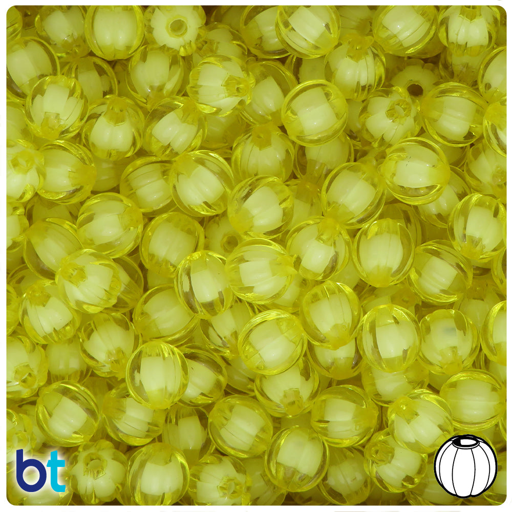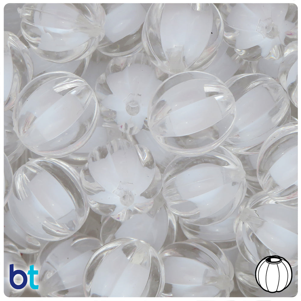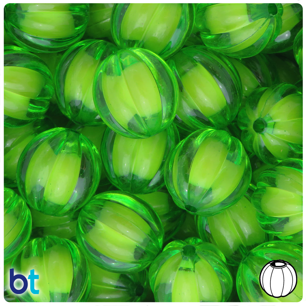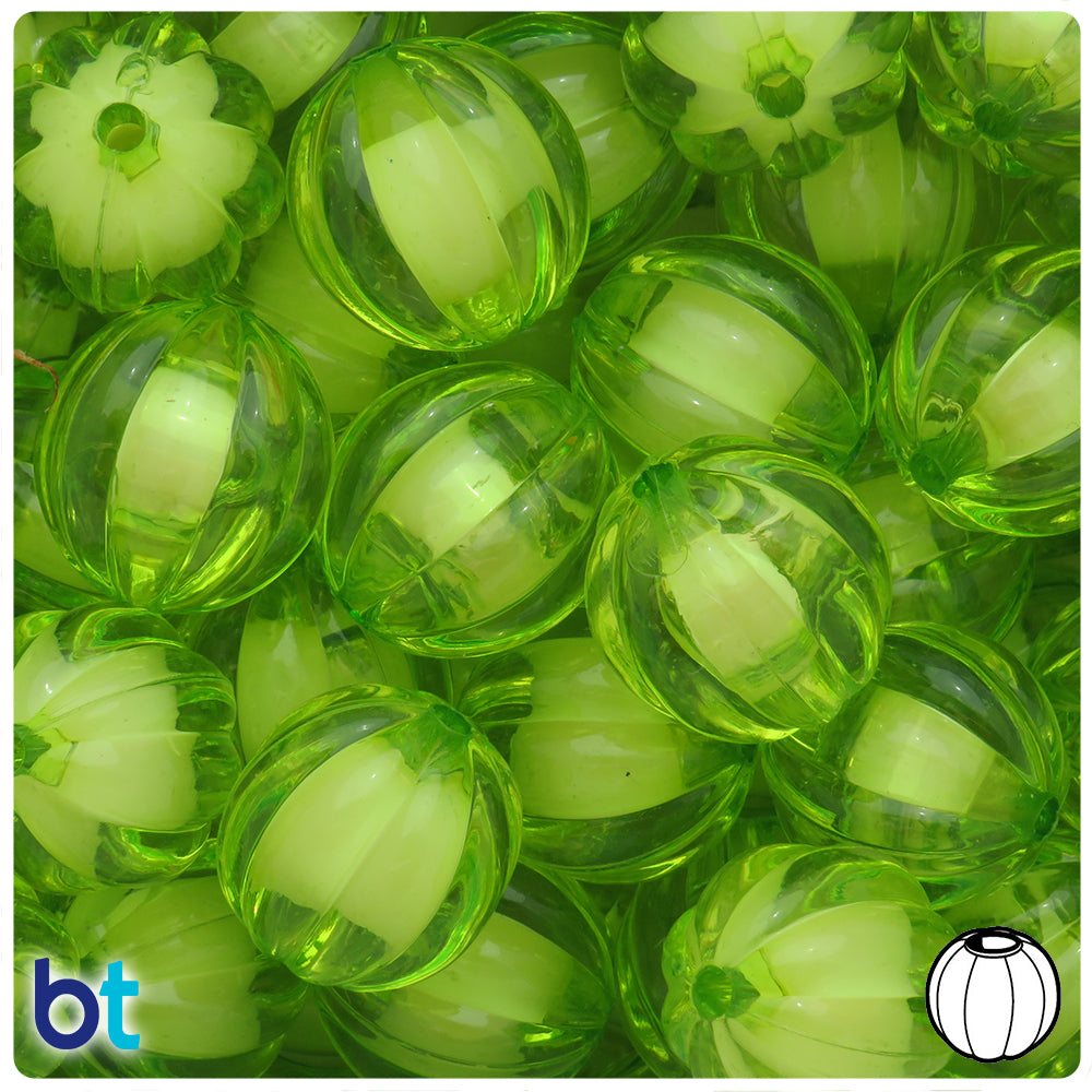 Light Green Transparent 20mm Melon Plastic Beads - White Core Bead (10pcs)
