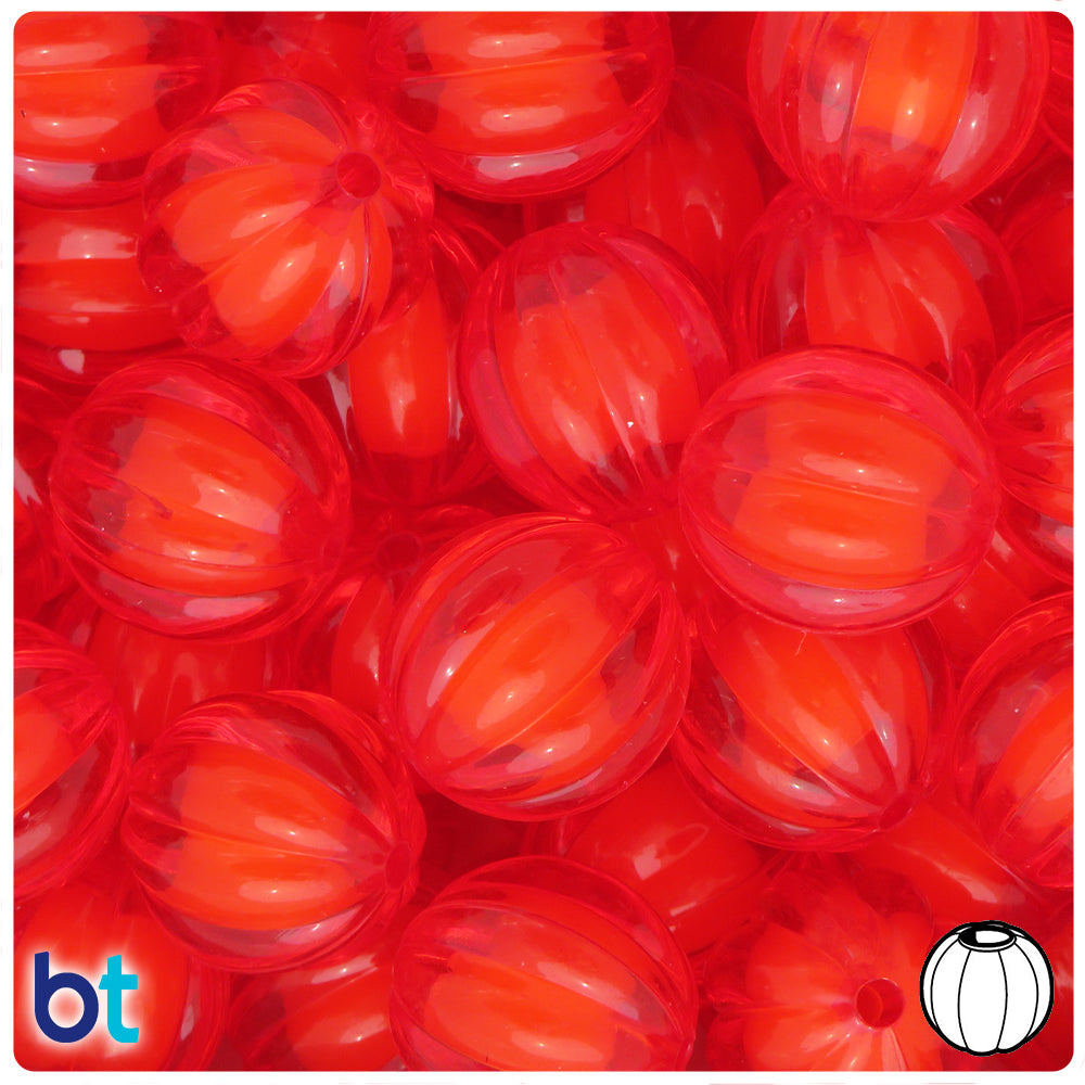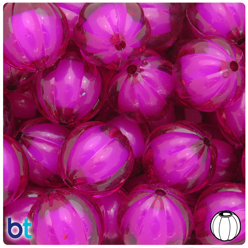 Dark Pink Transparent 20mm Melon Plastic Beads - White Core Bead (10pcs)