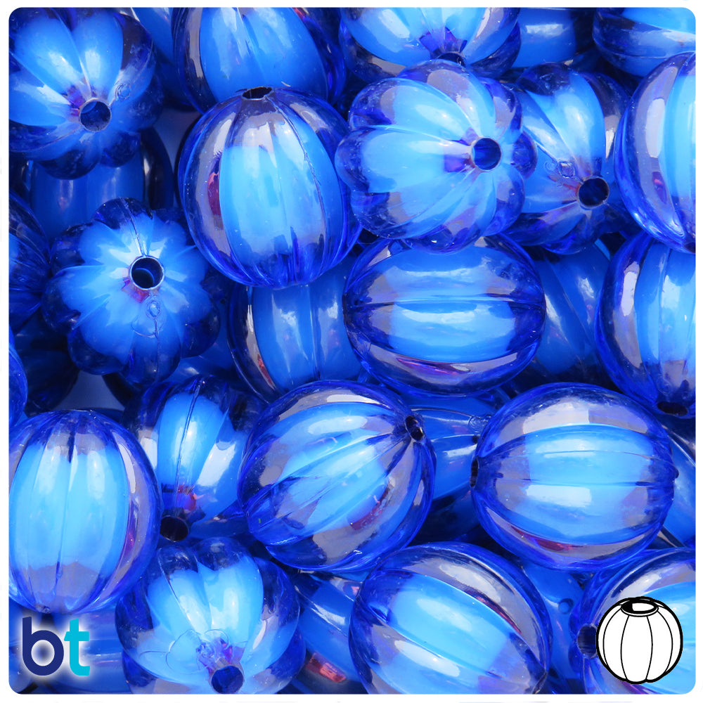 Dark Blue Transparent 20mm Melon Plastic Beads - White Core Bead (10pcs)