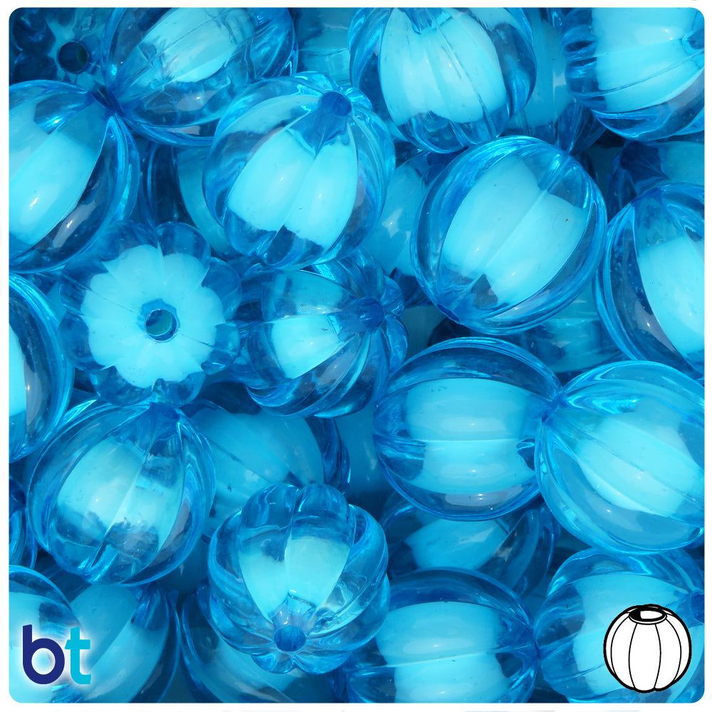 Aqua Blue Transparent 20mm Melon Plastic Beads - White Core Bead (10pcs)