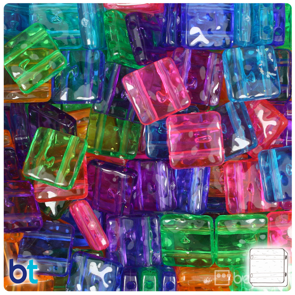 Jelly Transparent Mix 13mm Hammered Plastic Slide Beads - Flower Print (84g)