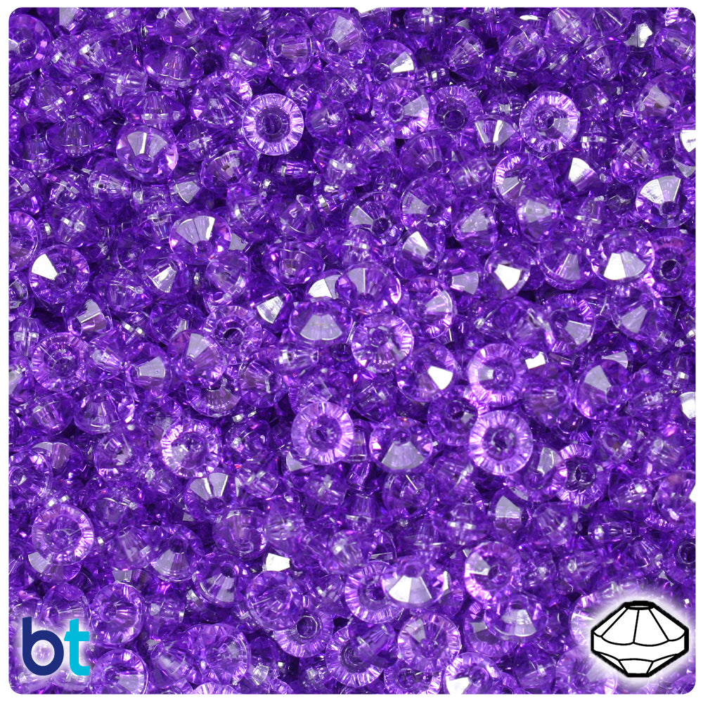 Our amethyst purple, in a see through transparent finish, faceted round plastic craft beads measure 6mm wide and 4mm high and at the highest point a 1mm hole which runs through the center of the bead. These plastic craft beads are made in the USA with high-quality non-toxic plastic and come in packs of approx. 1350 beads. Craft Beads are ideal for making necklaces, bracelets, key chain and other jewelry projects, as well as holiday decorations, home bedazzling and many other craft ideas. They are also perfect for children's craft projects and church or activity camps. Craft Beads come with a smaller hole, so they will fit on a range of threading material like elastic cord, stretchy cord and jewelry wire.