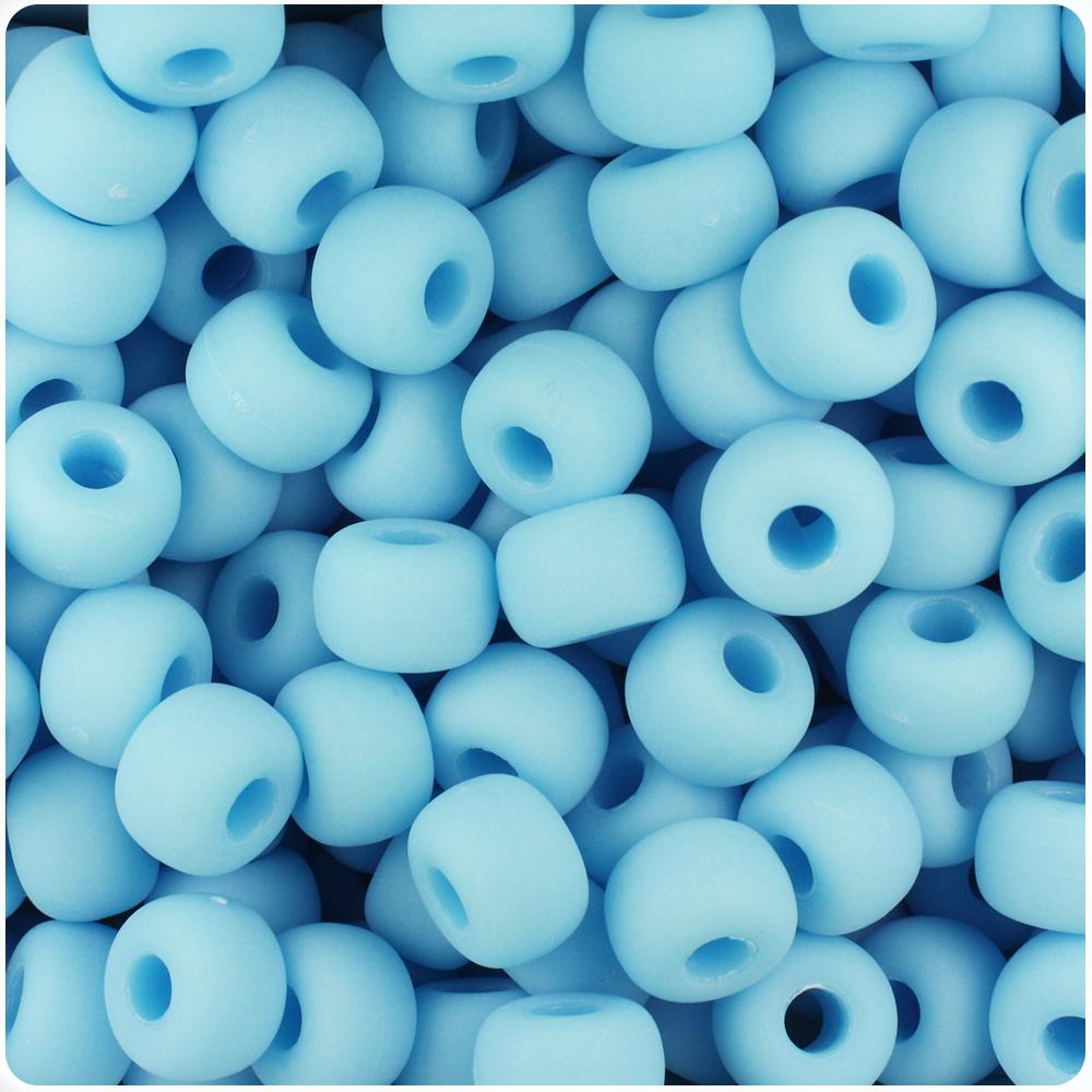 These baby blue matte large barrel pony beads measure 11mm wide by 8mm high and have a 4mm hole which runs vertically down the middle of the beads. Our plastic pony beads are made in the USA with high-quality plastic and come in packs of approx. 50 beads.