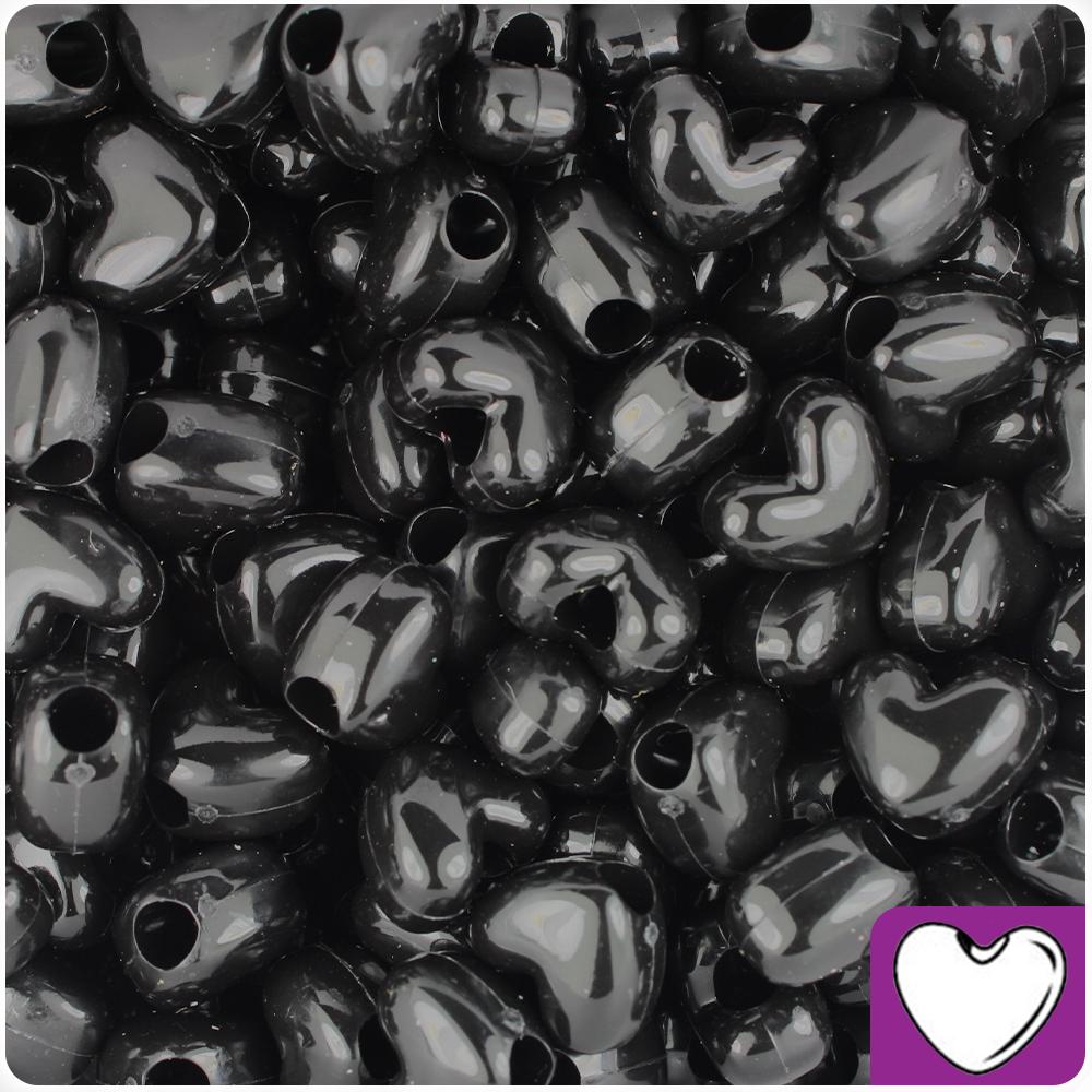 These black opaque heart shaped pony beads measure 12mm wide by 10mm high and have a 4mm hole which runs vertically down the middle of the beads. Our plastic pony beads are made in the USA with high-quality plastic and come in packs of approx. 50 beads.