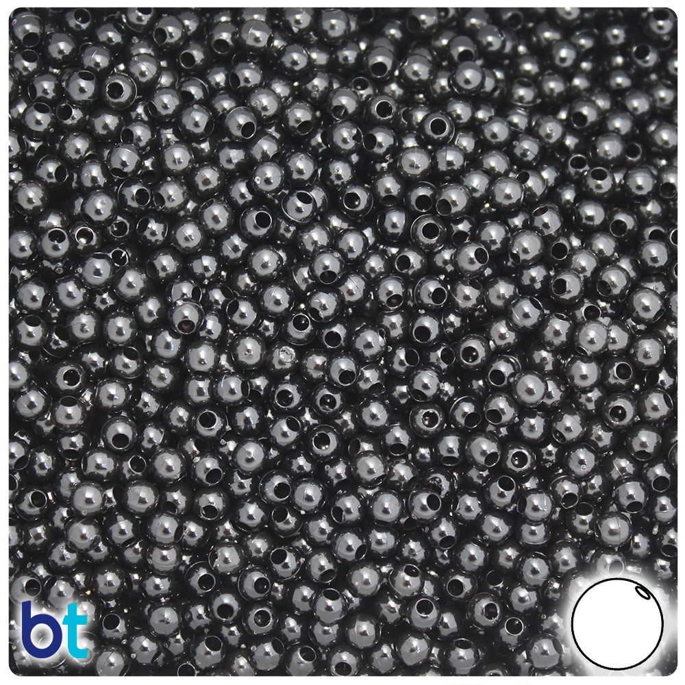 Our plain black, in a shiny opaque finish, round plastic craft beads measure 4mm diameter and have a 1mm hole which runs through the center of the bead. These plastic craft beads are made in the USA with high-quality plastic and come in packs of approx. 1000 beads. Craft Beads are ideal for making necklaces, bracelets, key chain and other jewelry projects, as well as holiday decorations, home bedazzling and many other craft ideas. They are also perfect for children's craft projects and church or activity camps. Craft Beads come with a small 1-2mm hole, so they will fit on a range of threading material like elastic cord, stretchy cord and jewelry wire.
