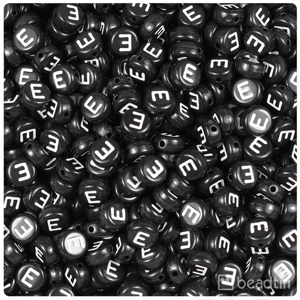 Available in individual letters or a mixed pack, these black opaque 7mm coin alphabet plastic beads have a 1mm hole which runs horizontally to the letter which is imprinted on both sides of the beads in white. Imported from China and sold in packs of approx. 100 beads.