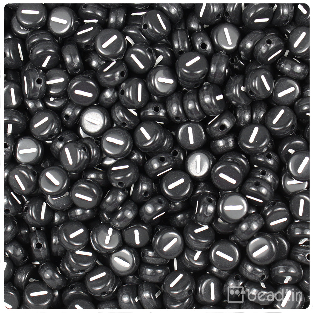 Available in individual letters or a mixed pack, these black opaque 7mm coin alphabet plastic beads have a 1mm hole which runs horizontally to the letter which is imprinted on both sides of the beads in white. Imported from China and sold in packs of approx. 100 beads.