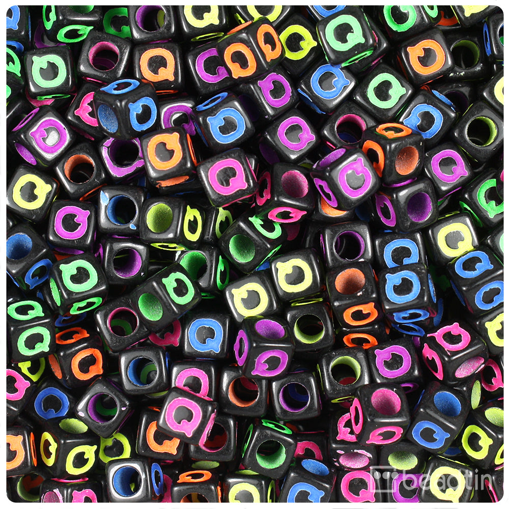 Available in individual letters, these black opaque 7mm cube alphabet plastic beads have a 3mm hole which runs horizontally to the letter which is imprinted on 4 sides of the beads in random colors. Imported from China and sold in packs of approx. 75 beads.