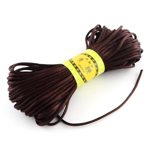 Brown satin cord 2mm thick and 20m long (approx, 22 yards) This nylon cord is also known as Chinese Knot, Rattail & Polyester cord. Imported from China and supplied in a zip lock bag.