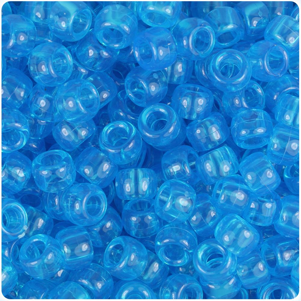 These cloudy blue transparent standard barrel pony beads measure 9mm wide by 6mm high and have a 4mm hole which runs vertically down the middle of the beads. Our plastic pony beads are made in the USA with high-quality plastic and come in packs of approx. 100 beads.