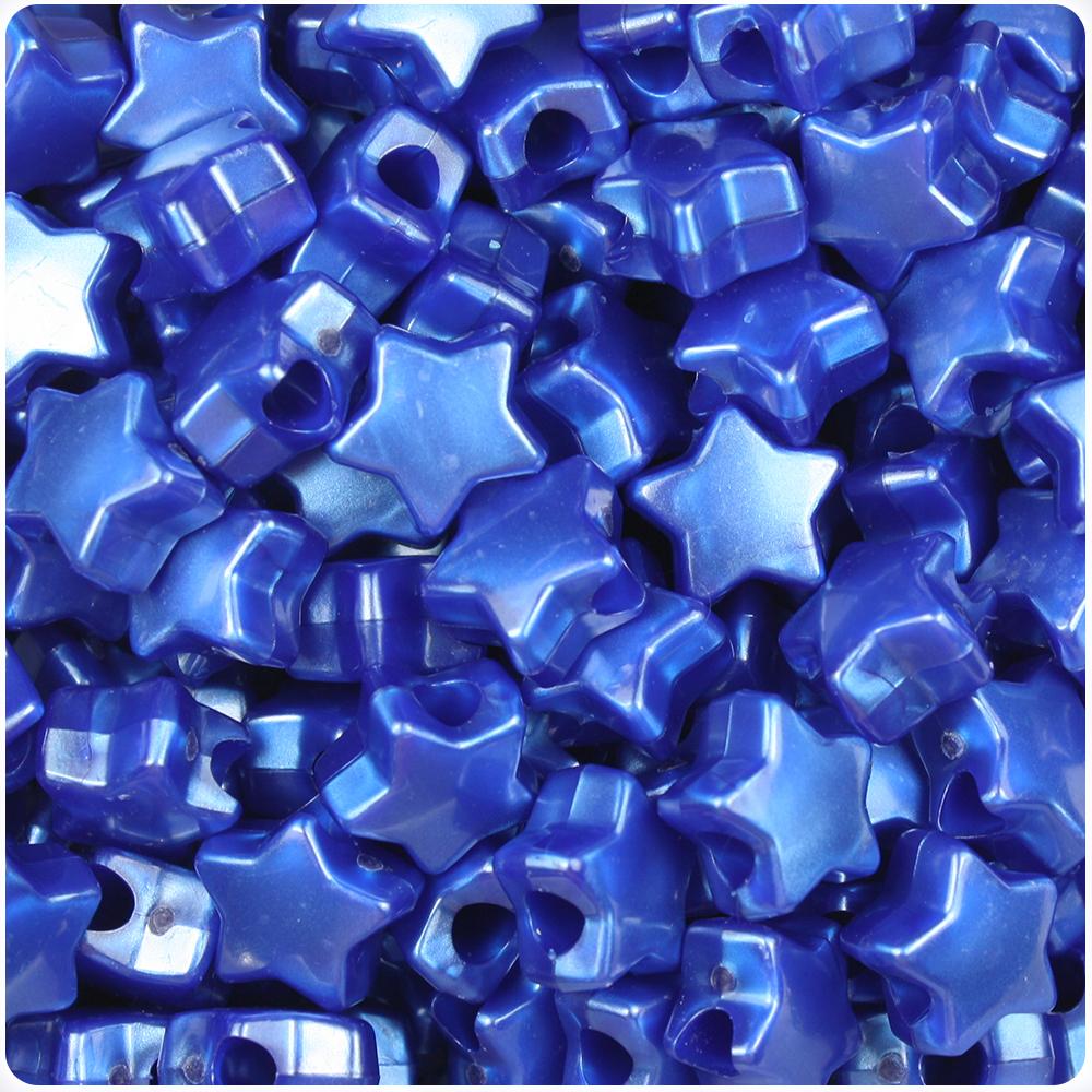 These cobalt blue pearl star shaped pony beads measure 13mm wide by 13mm high and have a 4mm hole which runs vertically down the middle of the beads. Our plastic pony beads are made in the USA with high-quality plastic and come in packs of approx. 50 beads.