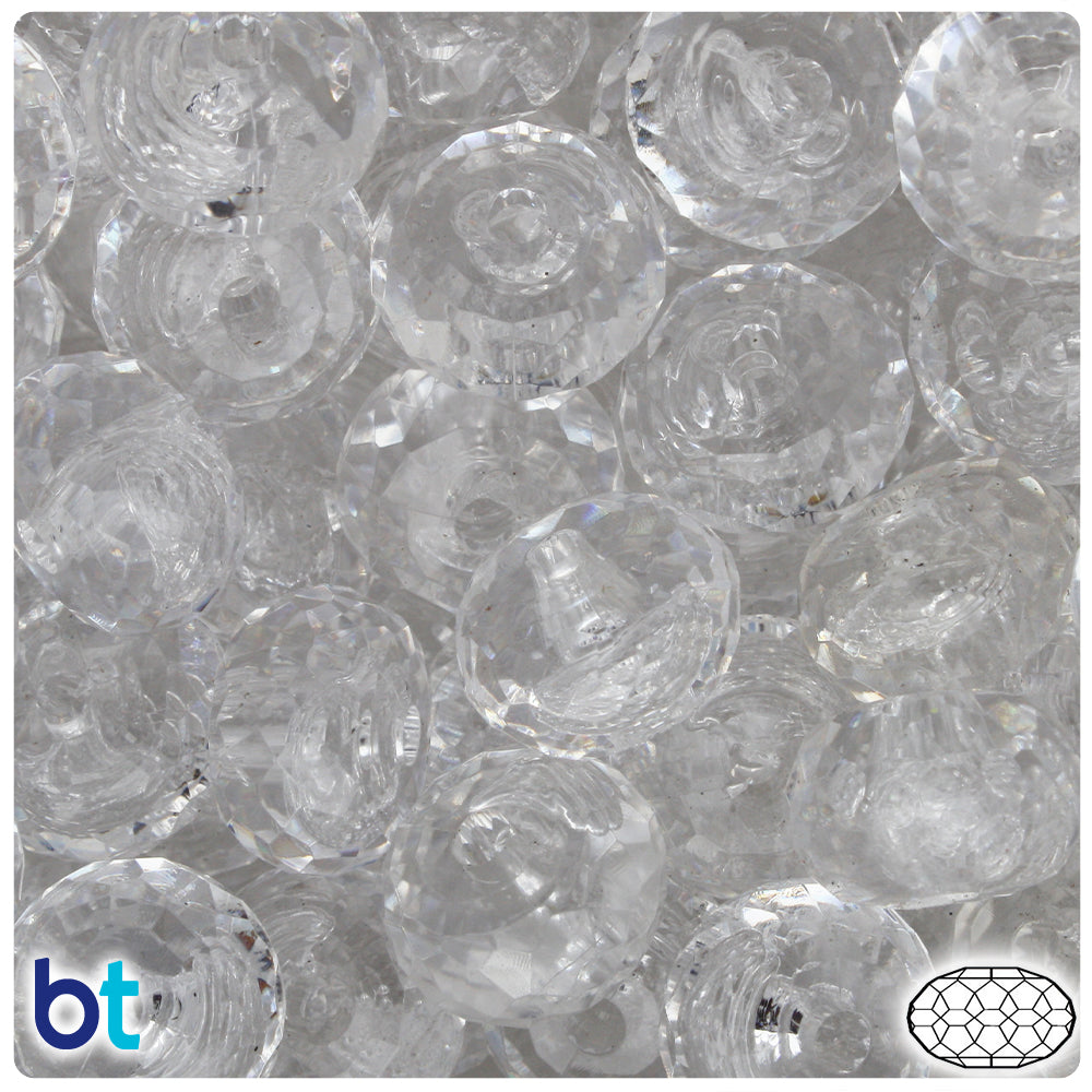 Our crystal clear, in a see through transparent finish, faceted cushion shaped plastic craft beads. These craft beads measure 18.5mm wide by 12.5mm high with a 3mm hole running down the middle of the bead. These plastic craft beads are made in the USA with high-quality plastic and come in packs of approx. 14 beads. Craft Beads are ideal for making necklaces, bracelets, key chain and other jewelry projects, as well as holiday decorations, home bedazzling and many other craft ideas. They are also perfect for children's craft projects and church or activity camps. Craft Beads come with a small 1-2mm hole, so they will fit on a range of threading material like elastic cord, stretchy cord and jewelry wire.