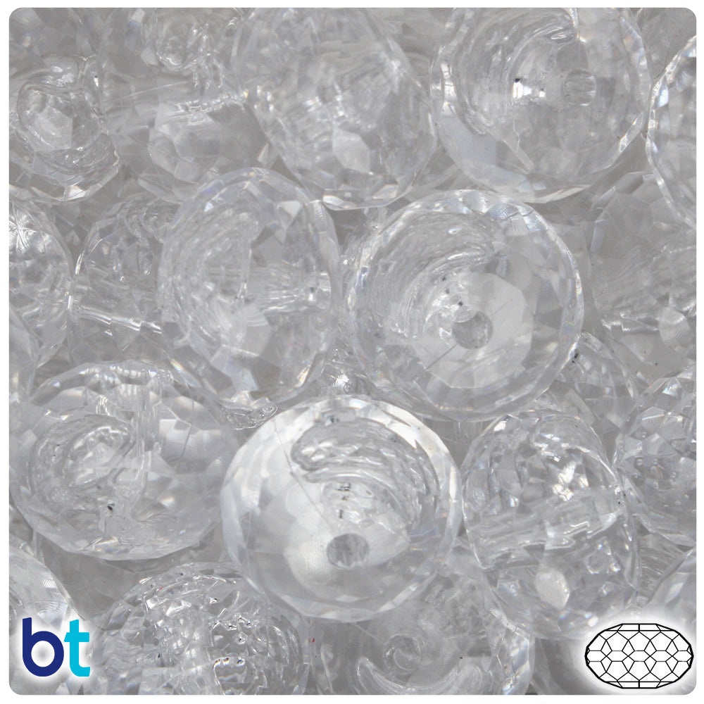 Our crystal clear, in a see through transparent finish, faceted cushion shaped plastic craft beads. These craft beads measure 23mm wide by 15mm high with a 3mm hole running down the middle of the bead. These plastic craft beads are made in the USA with high-quality plastic and come in packs of approx. 5 beads. Craft Beads are ideal for making necklaces, bracelets, key chain and other jewelry projects, as well as holiday decorations, home bedazzling and many other craft ideas. They are also perfect for children's craft projects and church or activity camps. Craft Beads come with a small 1-2mm hole, so they will fit on a range of threading material like elastic cord, stretchy cord and jewelry wire.