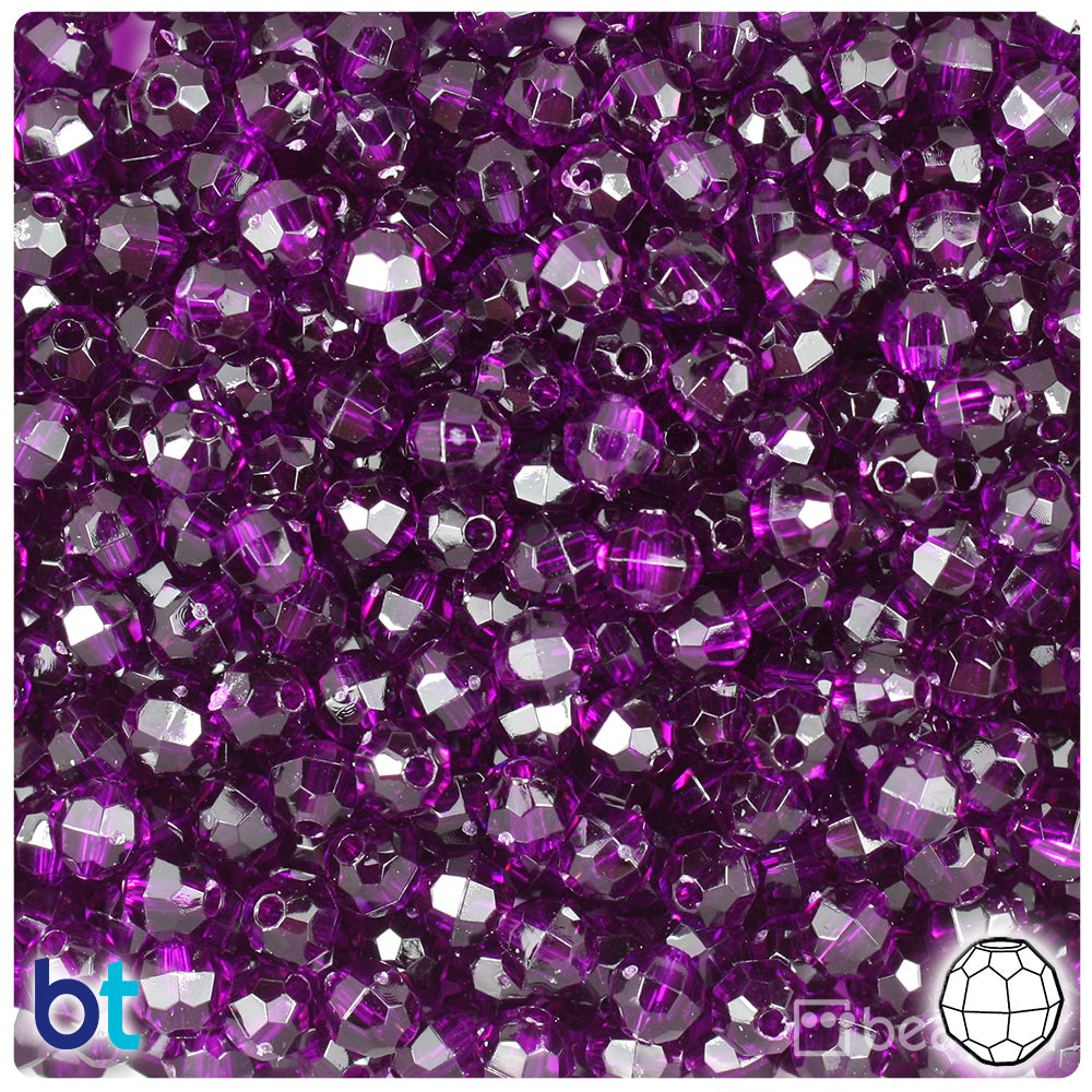 Our dark amethyst purple, in a see through transparent finish, faceted round plastic craft beads measure 6mm diameter and have a 1.3mm hole which runs through the center of the bead. These plastic craft beads are made in the USA with high-quality non-toxic plastic and come in packs of approx. 600 beads. Craft Beads are ideal for making necklaces, bracelets, key chain and other jewelry projects, as well as holiday decorations, home bedazzling and many other craft ideas. They are also perfect for children's craft projects and church or activity camps. Craft Beads come with a smaller hole, so they will fit on a range of threading material like elastic cord, stretchy cord and jewelry wire.