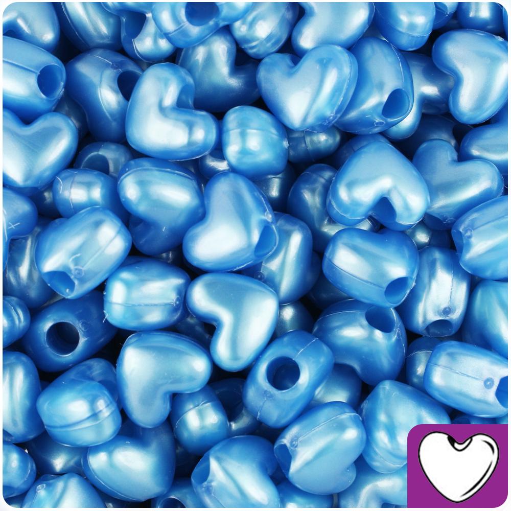 These dark blue pearl heart shaped pony beads measure 12mm wide by 10mm high and have a 4mm hole which runs vertically down the middle of the beads. Our plastic pony beads are made in the USA with high-quality plastic and come in packs of approx. 50 beads.