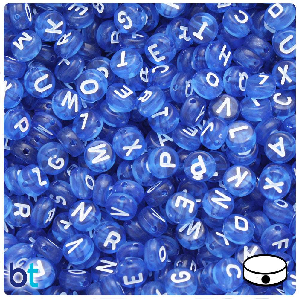 Dark Blue Transparent 7mm Coin Alpha Beads - White Letter Mix (250pcs)