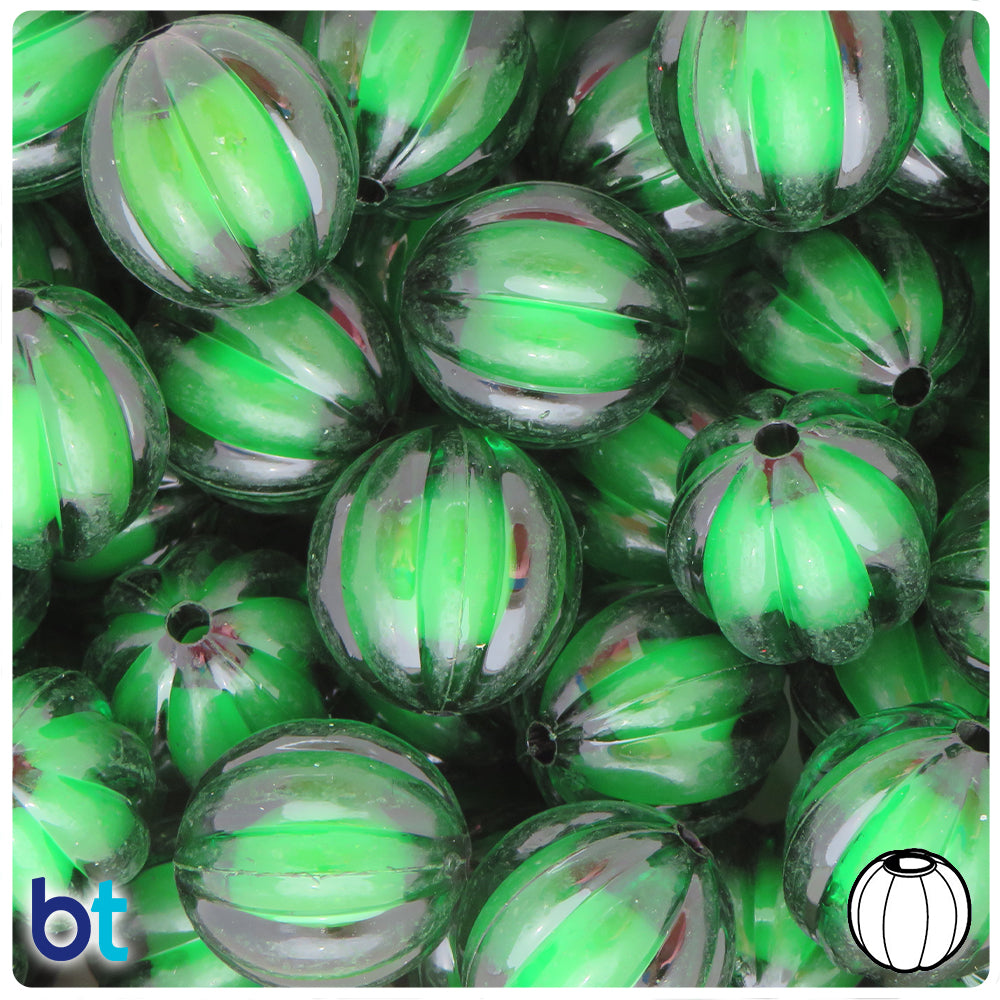 Dark Green Transparent 20mm Melon Plastic Beads - White Core Bead (10pcs)