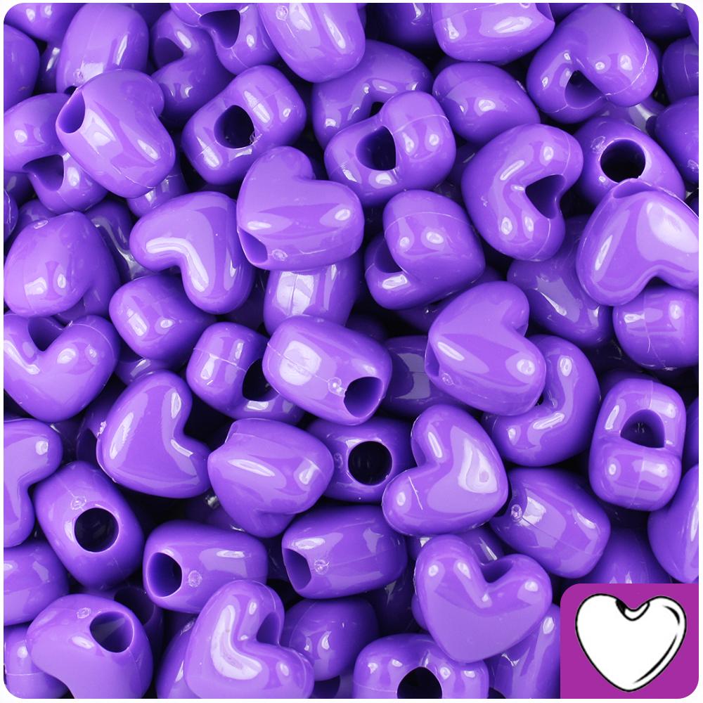 These dark lilac purple opaque heart shaped pony beads measure 12mm wide by 10mm high and have a 4mm hole which runs vertically down the middle of the beads. Our plastic pony beads are made in the USA with high-quality plastic and come in packs of approx. 50 beads.