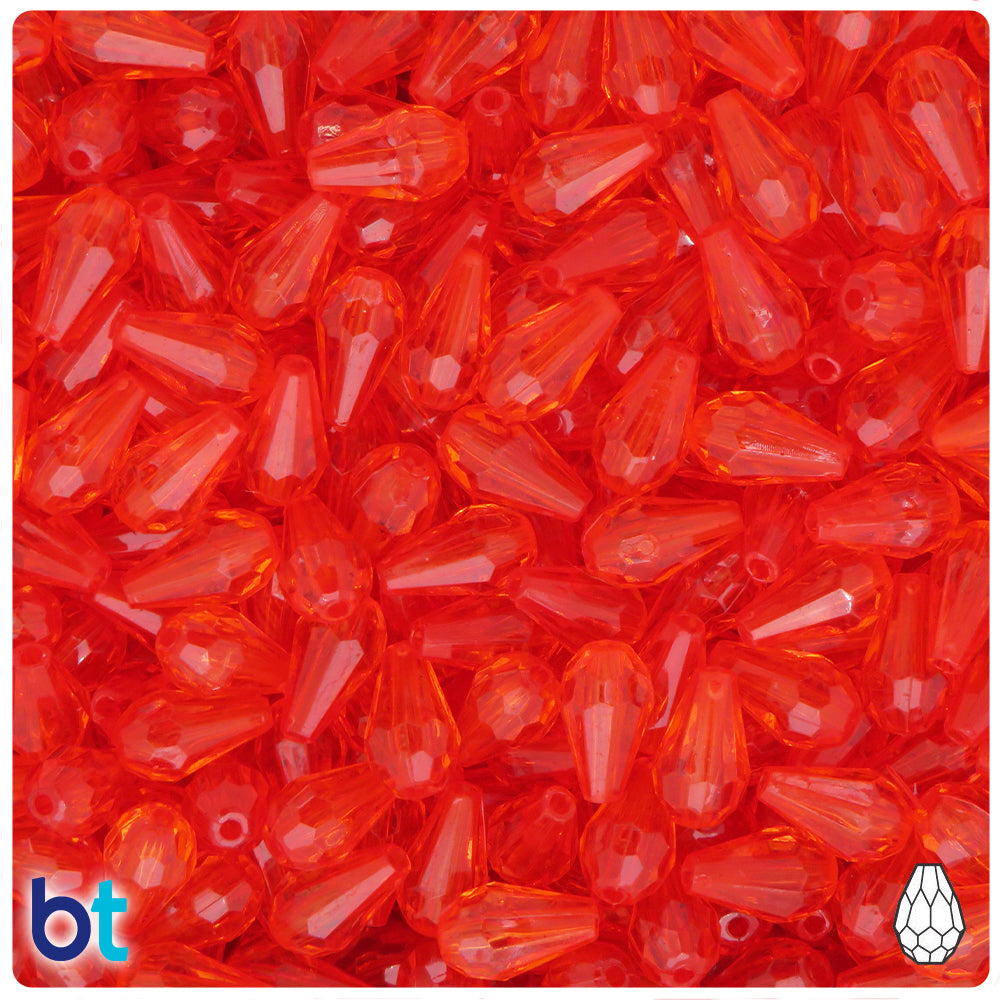 Our dark orange transparent faceted pear plastic beads measure 12mm long by 7mm wide (at the widest point) with a 1.mm hole which runs vertically through the center of the bead. This shape is also known as a faceted teardrop. These plastic/acrylic craft beads are imported from China and these come in packs of approx. 150 beads. Craft Beads are ideal for making necklaces, bracelets, key chain and other jewelry projects, as well as holiday decorations, home bedazzling and many other craft ideas. They are also perfect for children's craft projects and church or activity camps. Craft Beads come with a smaller hole, so they will fit on a range of threading material like elastic cord, stretchy cord and jewelry wire.