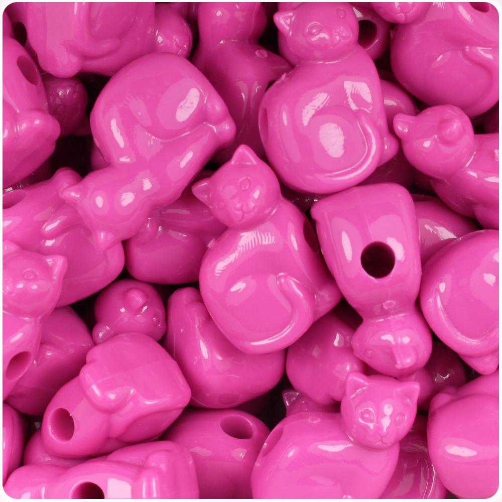A pack of cat shaped novelty pony beads from the pet parade series. These plastic pony beads measure 17mm wide and 23mm high, with a 4mm hole running horizontally across the middle of the bead. Our pony beads are made in the USA with non-toxic polystyrene plastic and are sold in packs of 8 beads.