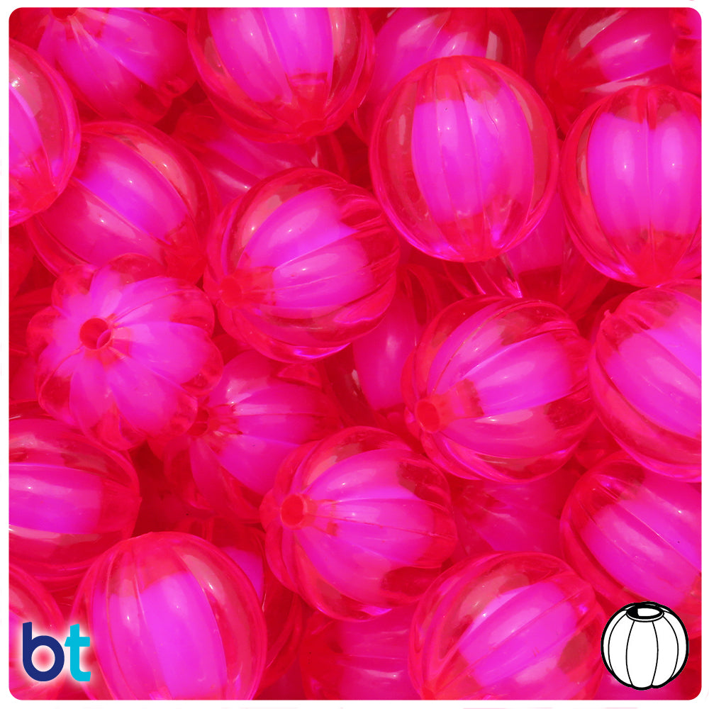 Dark Pink Transparent 20mm Melon Plastic Beads - White Core Bead (10pcs)