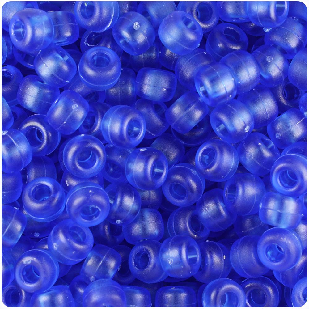 These dark sapphire blue frosted standard barrel pony beads measure 9mm wide by 6mm high and have a 4mm hole which runs vertically down the middle of the beads. Our plastic pony beads are made in the USA with high-quality plastic and come in packs of approx. 100 beads.