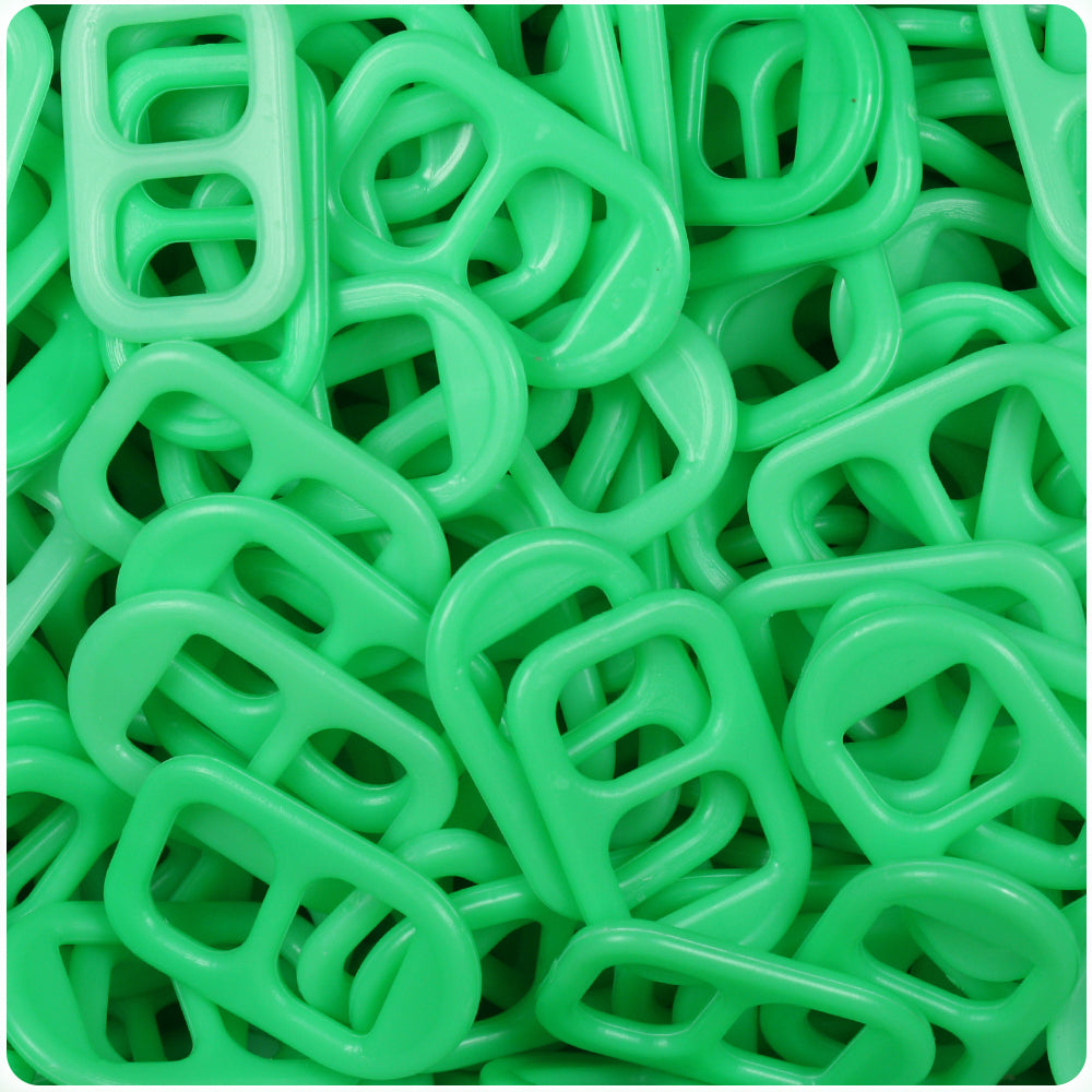 These grasshopper neon bright plastic soda pop tabs measure 24mm long and 16mm wide. They bend without breaking, string easily and do not have sharp edges like metal tabs and come in packs of approx. 135 tabs. Our plastic craft products are made in the USA with high-quality plastic.
