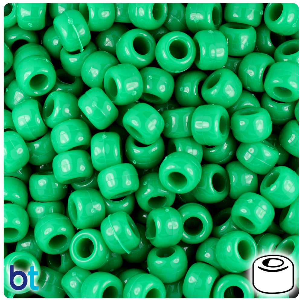 Green Opaque 9mm Barrel Pony Beads (500pcs)