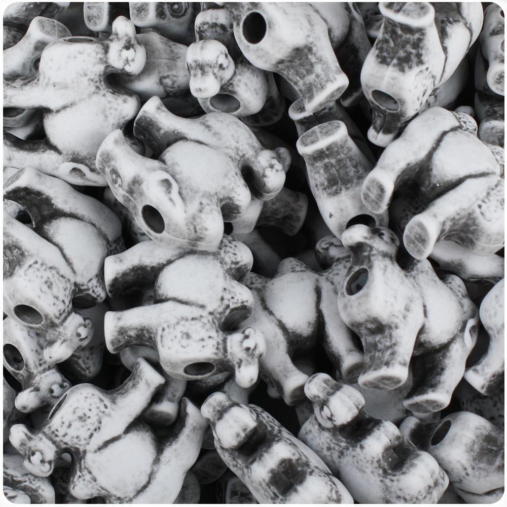 These grey with black antique camel shaped pony beads, from the safari animal series, measure 21mm long by 19mm high and have a 4mm hole which runs along the middle of the beads. These plastic novelty pony beads are made in the USA with high-quality plastic and come in packs of 8 beads.