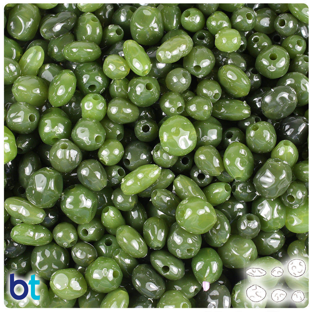 Our jade green, in a shiny opaque finish, freshwater pearl shaped plastic craft beads. These craft beads measure between 5-10mm in diameter and have a 1mm hole that runs through the center of the bead. These plastic craft beads are made in the USA with high-quality plastic and come in packs of 50g approx. 250 beads. Craft Beads are ideal for making necklaces, bracelets, key chain and other jewelry projects, as well as holiday decorations, home bedazzling and many other craft ideas. They are also perfect for children's craft projects and church or activity camps. Craft Beads come with a small 1-2mm hole, so they will fit on a range of threading material like elastic cord, stretchy cord and jewelry wire.