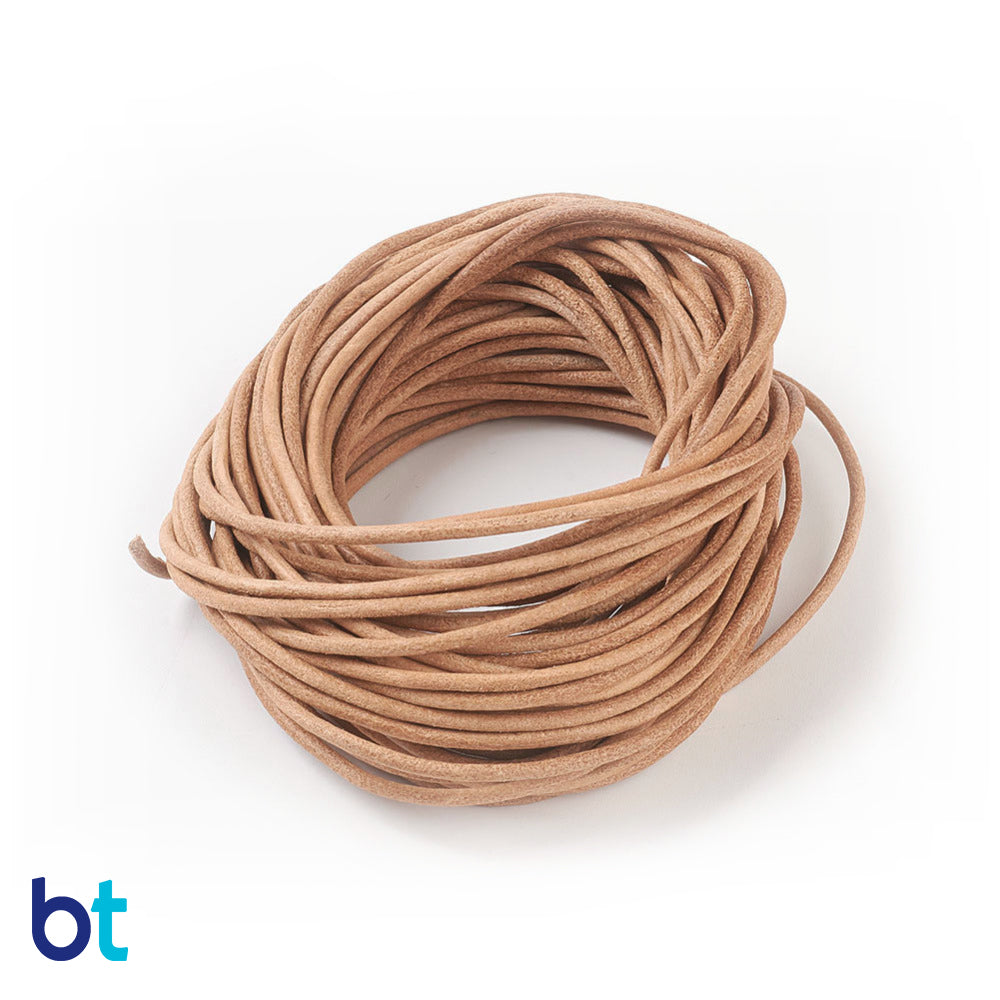 Light brown genuine cowhide leather cord 2mm thick and 10m long (approx, 10.9 yards). Imported from China and supplied in a zip lock bag.