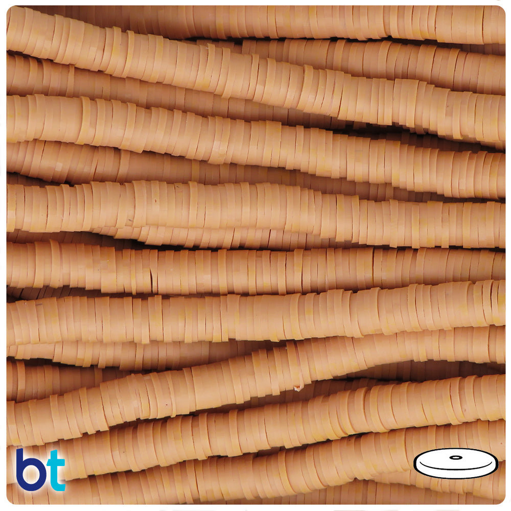 These light brown opaque polymer clay heishi disc craft beads measure 6mm diameter, about 1mm thick and have a 2mm center hole. Our polymer clay craft beads are imported from China and these come in packs of approx. 700 beads.