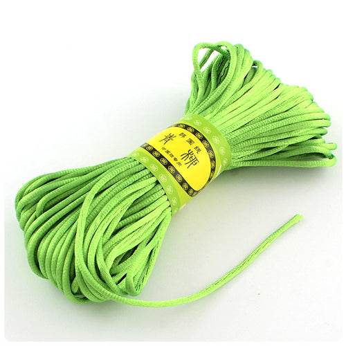 Light green satin cord 2mm thick and 20m long (approx, 22 yards) This nylon cord is also known as Chinese Knot, Rattail & Polyester cord. Imported from China and supplied in a zip lock bag.