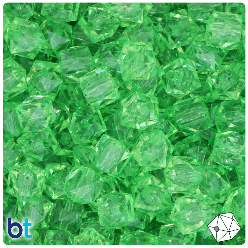 These light green transparent faceted cube / polygon plastic beads measure 10x10mm with a 1.5mm hole which runs vertically through the center of the bead. Our plastic craft beads are imported from China and these come in packs of approx. 100 beads. Craft Beads are ideal for making necklaces, bracelets, key chain and other jewelry projects, as well as holiday decorations, home bedazzling and many other craft ideas. They are also perfect for children's craft projects and church or activity camps. Craft Beads come with a small smaller, so they will fit on a range of threading material like elastic cord, stretchy cord and jewelry wire.