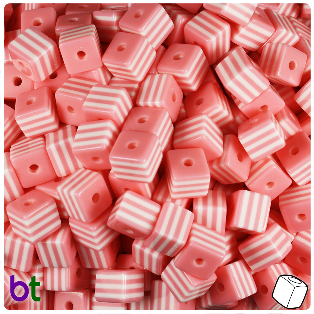 These light pink & white cube resin striped beads measure 8mm cube with a 1mm hole which runs through the center of the bead. Our resin craft beads are imported from China and these come in packs of approx 100 beads.