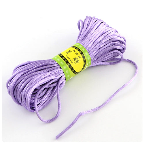Light purple satin cord 2mm thick and 20m long (approx, 22 yards) This nylon cord is also known as Chinese Knot, Rattail & Polyester cord. Imported from China and supplied in a zip lock bag.