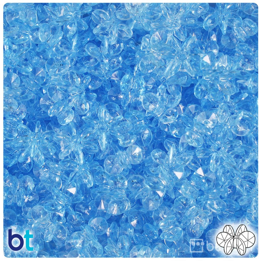 Our light sapphire blue, in a see through transparent finish, sunburst plastic craft beads measure 12mm diameter and have a 1mm hole which runs through the center of the bead. SunBursts are also know as Paddle Wheel, Ferris Wheel, Star Flakes, StarBursts and Snowflake beads. These plastic craft beads are made in the USA with high-quality plastic and come in packs of approx. 450 beads. Craft Beads are ideal for making necklaces, bracelets, key chain and other jewelry projects, as well as holiday decorations, home bedazzling and many other craft ideas. They are also perfect for children's craft projects and church or activity camps. Craft Beads come with a small 1-2mm hole, so they will fit on a range of threading material like elastic cord, stretchy cord and jewelry wire.