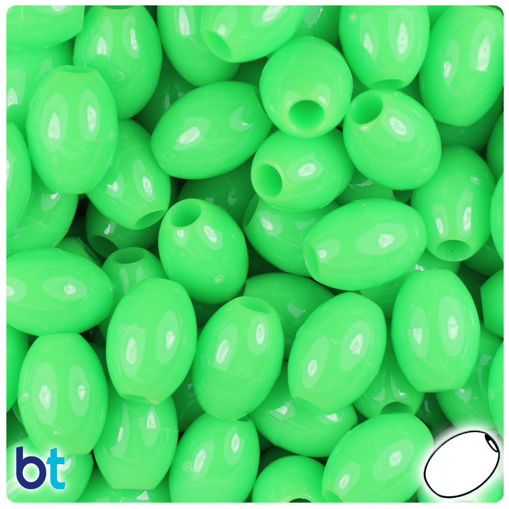 Our lime green, in a shiny opaque finish, oval shaped plastic pony beads. These pony beads measure 14mm long by 10mm wide and have a 4mm hole which runs down the middle of the bead. These plastic pony beads are made in the USA with high-quality, non-toxic polystyrene plastic and sold in packs of approx. 200 beads. Pony beads are ideal for a wide variety of projects like; necklaces, bracelets, kandi, and dream catchers. The larger hole is easier to thread so makes them perfect for children's parties, activity camps and VBS.